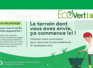 Chez ecovertjw, nous offrons des services de traitement de pelouse, d'aération, de fertilisation et bien plus, pour un jardin sain et verdoyant. Faites confiance à notre expertise.